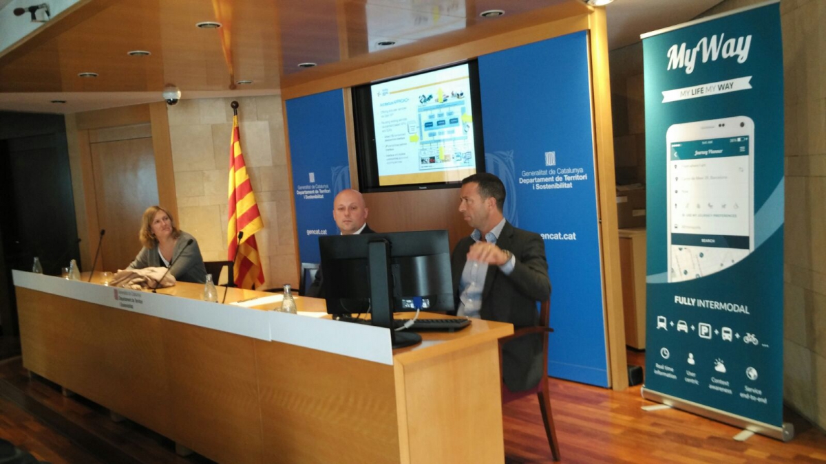 Under the Urban Mobility Week, on Friday 18, Rocío Sanchez and Francesc Varela were part of the MyWay Sustainable Mobility’s day, where the project MyWay was presented. The project involves the development of an application (app) that meets the mobility needs of citizens through a multimodal platform that integrates all public transport in Catalonia, as well as the private car, motorbike or bicycle. As Nexus Geographics has worked actively in this project, Francesc was commissioned to carry out the Technological challenges of MyWay paper.