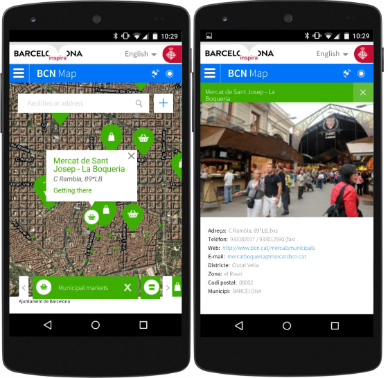 In the contents block aimed at the locals, called lameva.barcelona.cat, there's plenty of information of interest to the citizens. Nexus Geografics has collaborated in the development of the CITY MAP application, one of the most visited, main address look-up and query point for the more than 22.000 facilities in the city. The application is a top level technological renovation and has been developed with the new access needs through smartphones or tablets in mind, which already count for a third of all accesses to the web.
